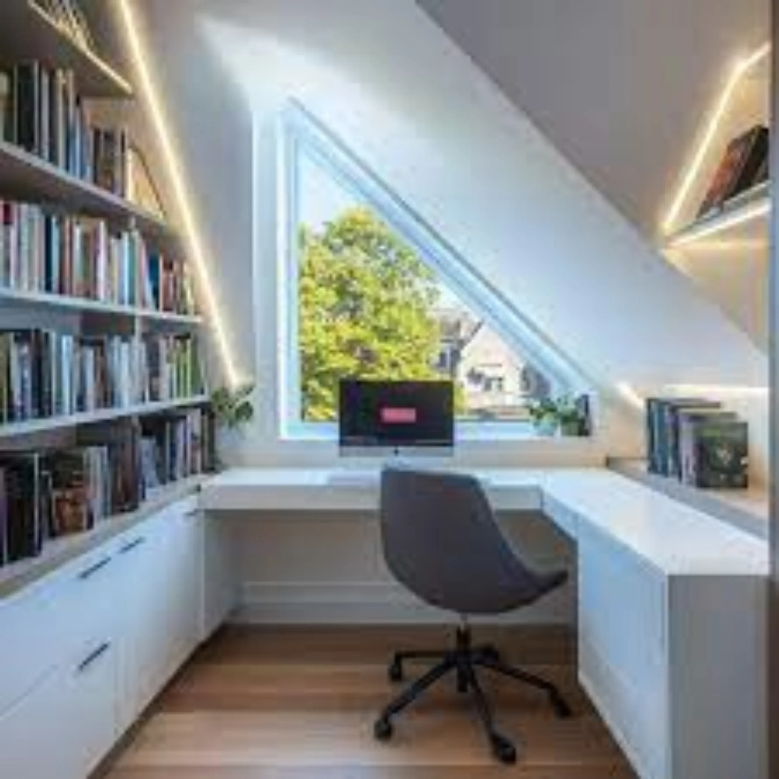 Convert your loft into a peaceful, productive home office—complete with storage, skylights, and space to focus.